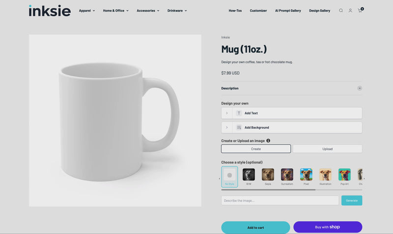 Elevate your ritual with a premium custom 11oz Ceramic Coffee Mug, the ultimate personalized coffee gift. Showcase your unique design with a vibrant, full-wrap sublimation print on this classic, durable mug, which is completely dishwasher and microwave-safe for daily convenience. Creating your perfect custom coffee mug is easy on Inksie—just type text and see it appear, upload images, or use our AI to generate or style designs instantly! As your local custom printing source, we produce these made in the USA mugs with no minimum order, ensuring faster delivery and a smaller carbon footprint. Discover why Inksie is your best choice for 'custom printing near me.' Print. Made easy. Everywhere.